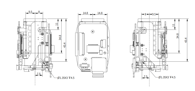 4Pin Ethernet port, 6PIN Power va UART porti, 5PIN audio port. |